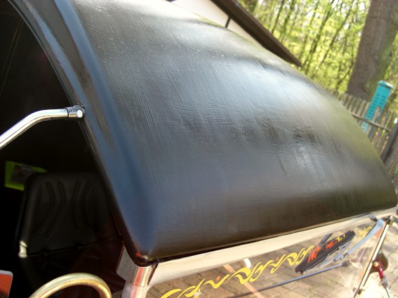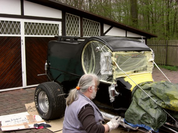 Streichen wollte ich den Wagen, nix Spraydose und so. Ich wollte ganz bewußt ein paar Pinselhaare und die Streichspuren auf dem Wagen haben, einfach weil ich von dieser Plastikoptik weg wollte. Außerdem wirkt gestrichener Mattlack nicht so matt, wie aus der Spraydose und billiger ist es auch noch. Der Rod sollte einfach nur ein bischen älter aussehen.